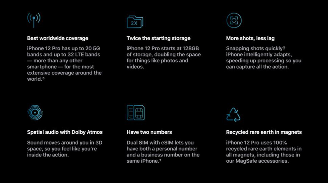 iPhone 12 Pro has up to 20 5G bands and up to 32 LTE bands — more than any other smartphone — for the most extensive coverage around the world.