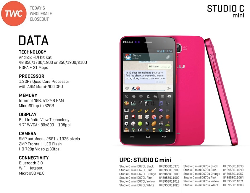 BRAND NEW BLU STUDIO C MINI D670L BLACK 4G ANDROID GSM UNLOCKED WHOLESALE CELL PHONES