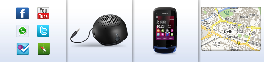 Nokia C2-03 is a dual-band 900/1800 MHz handset, and it lets the user to quickly change SIM cards through a slot on the side of the phone with out switching off the phone. The phone can remember the settings of up to five different SIM cards. It comes with the new version of Nokia Maps pre-loaded. The latest pre-loaded Nokia Browser for Series 40 compresses the data and provides a faster and more cost-efficient web browsing experience.